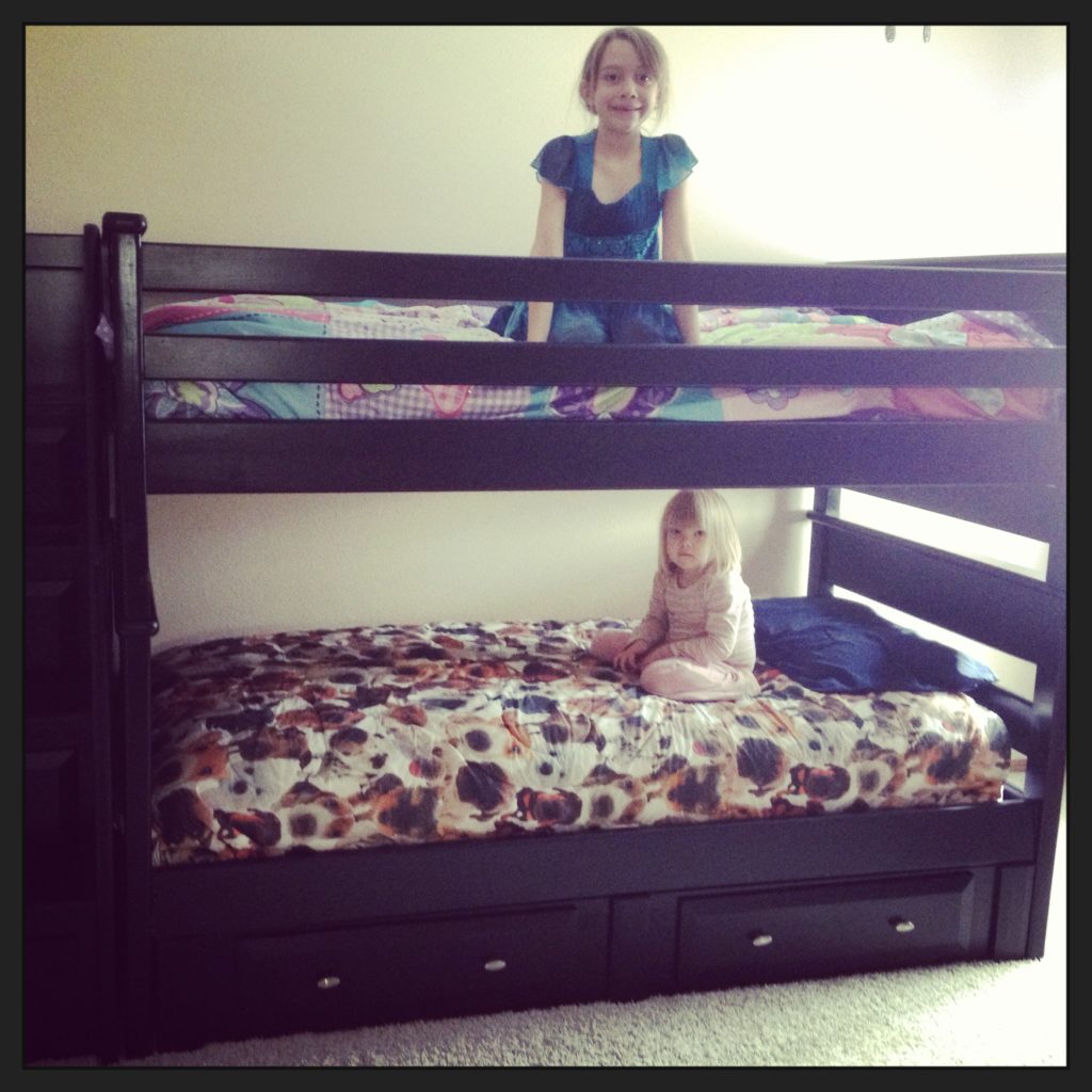 New bunk beds for the big girls! They are thrilled! Greg is going to make Adrianna a special set of lights that will go on the ceiling above the top bunk so she can stay up late reading without disturbing Bree.