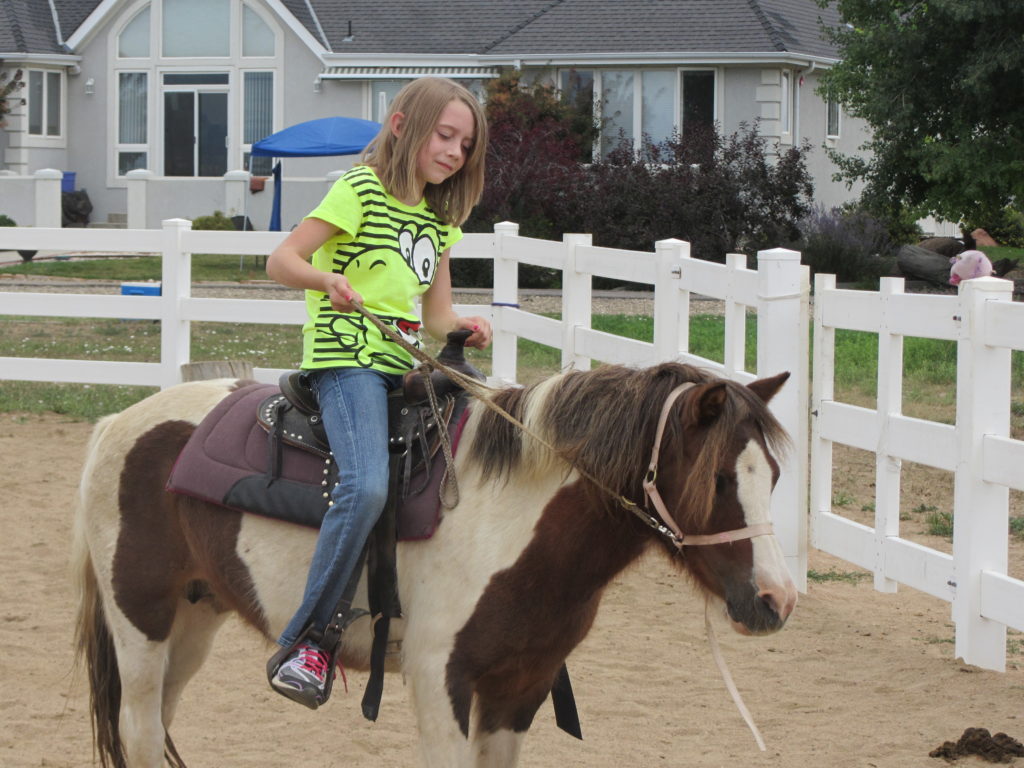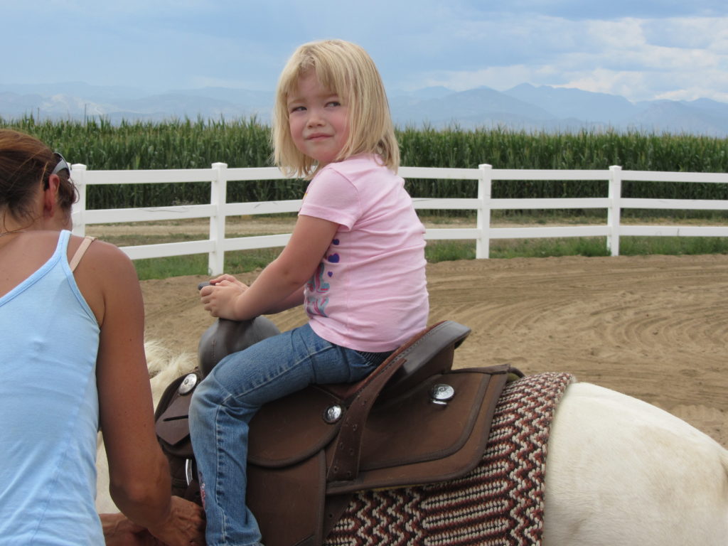 (A woman in our homeschool group has a farm up in Loveland and her boys were doing a fundraiser for rodeo money and were offering pony and horse rides, along with some other farm fun. It sounded like the perfect opportunity for my horse/pony lovin’ girl. :) And Adrianna was excited to ride a pony, too!)