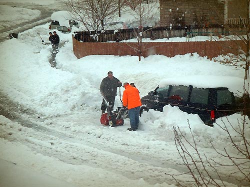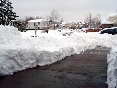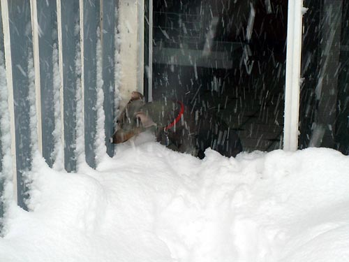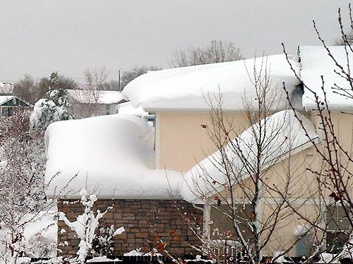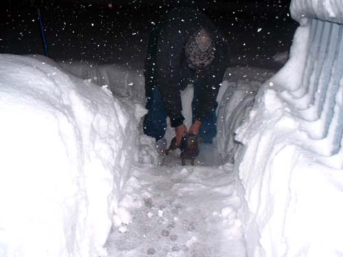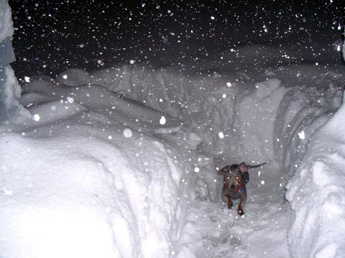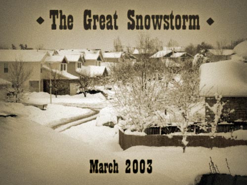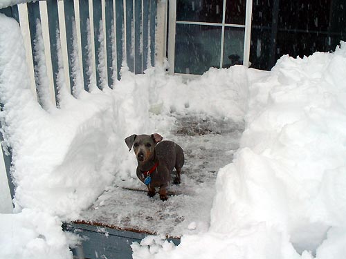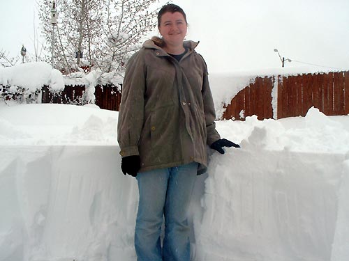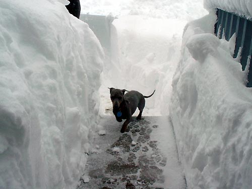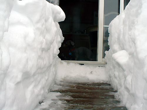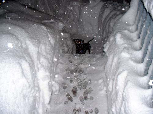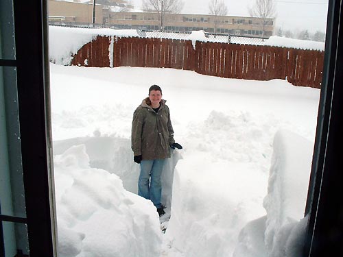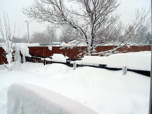 As you might have guessed, it snowed here. We really got dumped on. It was the biggest snowfall in Denver's history since 1913. We got snowed in by more than four feet of it and it was tons-o-fun. You can see the progression of the snowfall in the pictures as it goes from day to evening to morning to evening. If you're from Minnesota, North Dakota, Siberia, or some snow bound region don't laugh. You can see the little "dog run" we shoveled out in our back yard in some of the pictures.